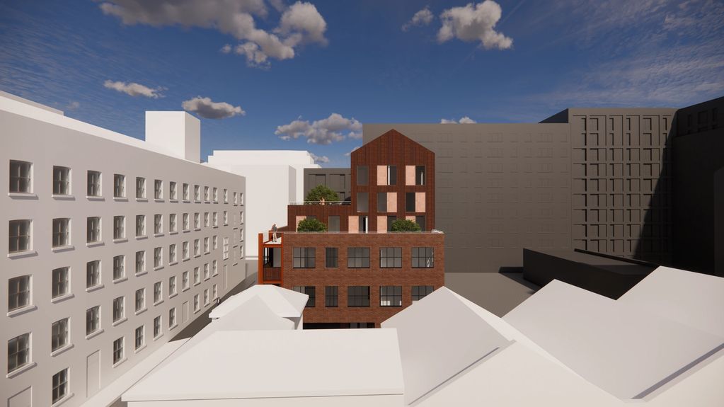 The architectural design features a two-tier structure: the original brick base and a light, modern rooftop addition. Corten steel, a material of choice for the project, plays a crucial role not only in providing